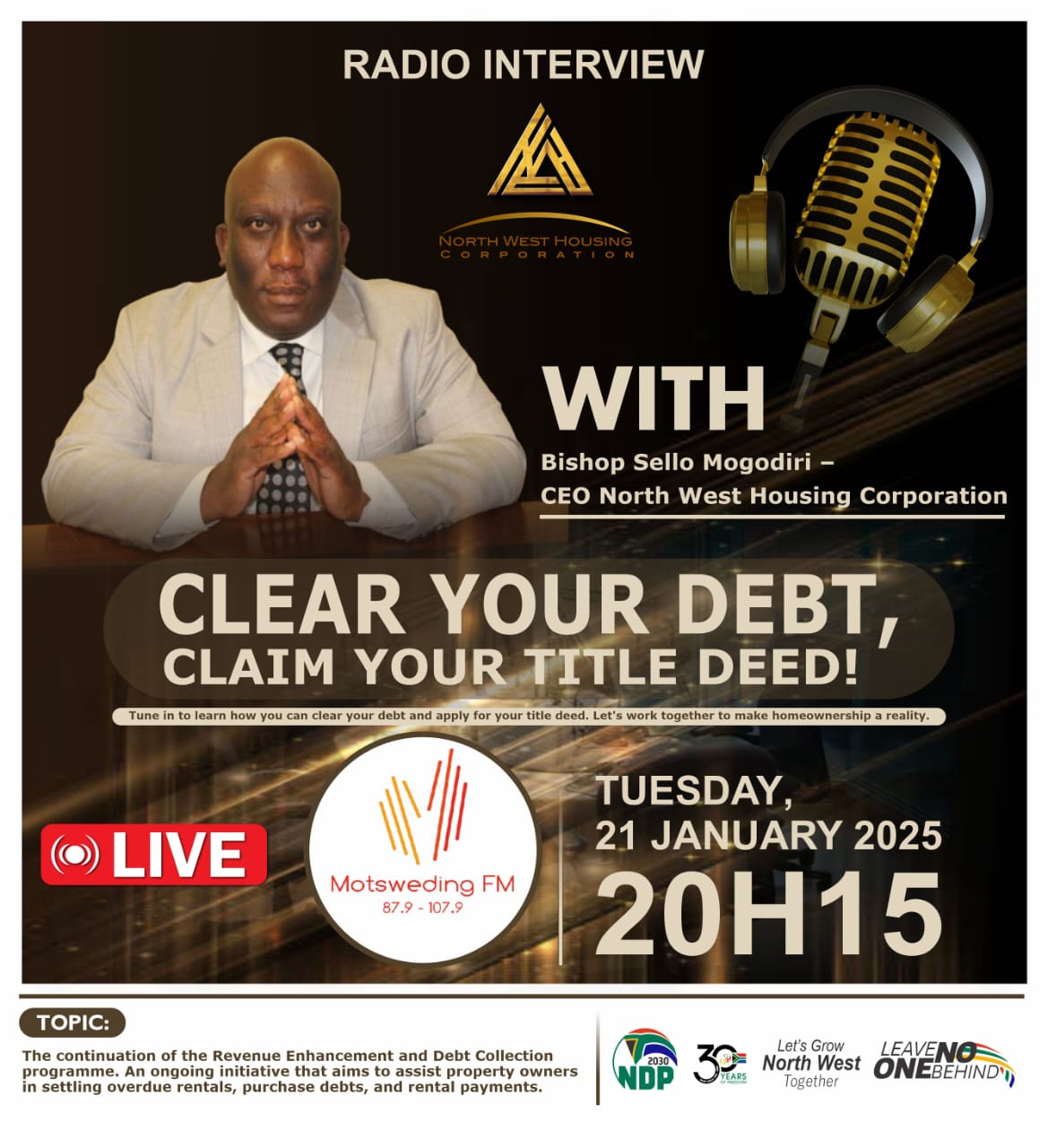 As we continue with the Revenue Enhancement and Debt Collection Programme, we invite you to tune in to Motsweding FM to learn more about the initiative.