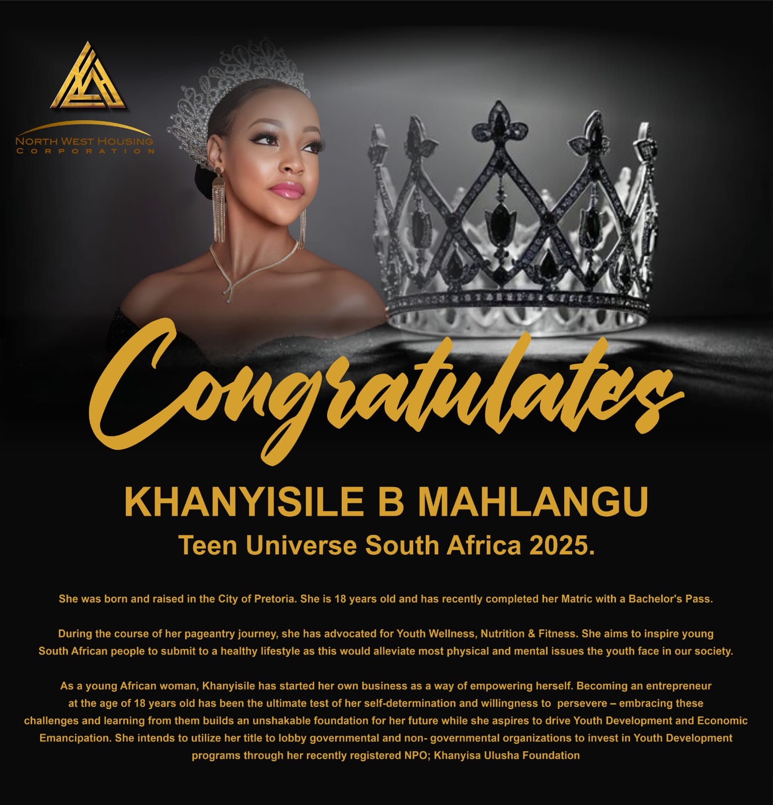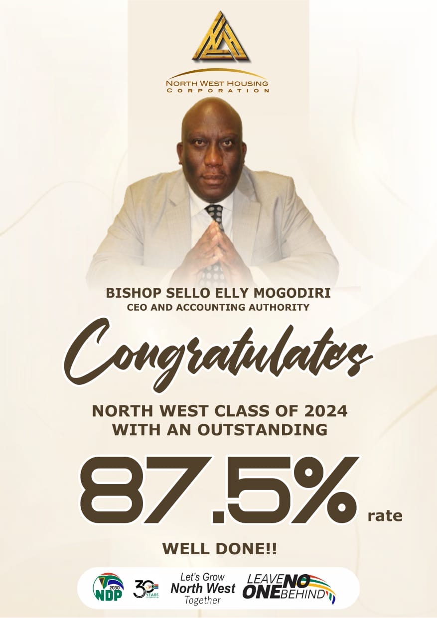 The NWHC CEO and Accounting Authority extends his heartfelt congratulations to all matriculants of the year 2024 in the North West Province for their outstanding achievements. Your hard work and dedication have truly paid off, and we wish you all the best in your future endeavors.